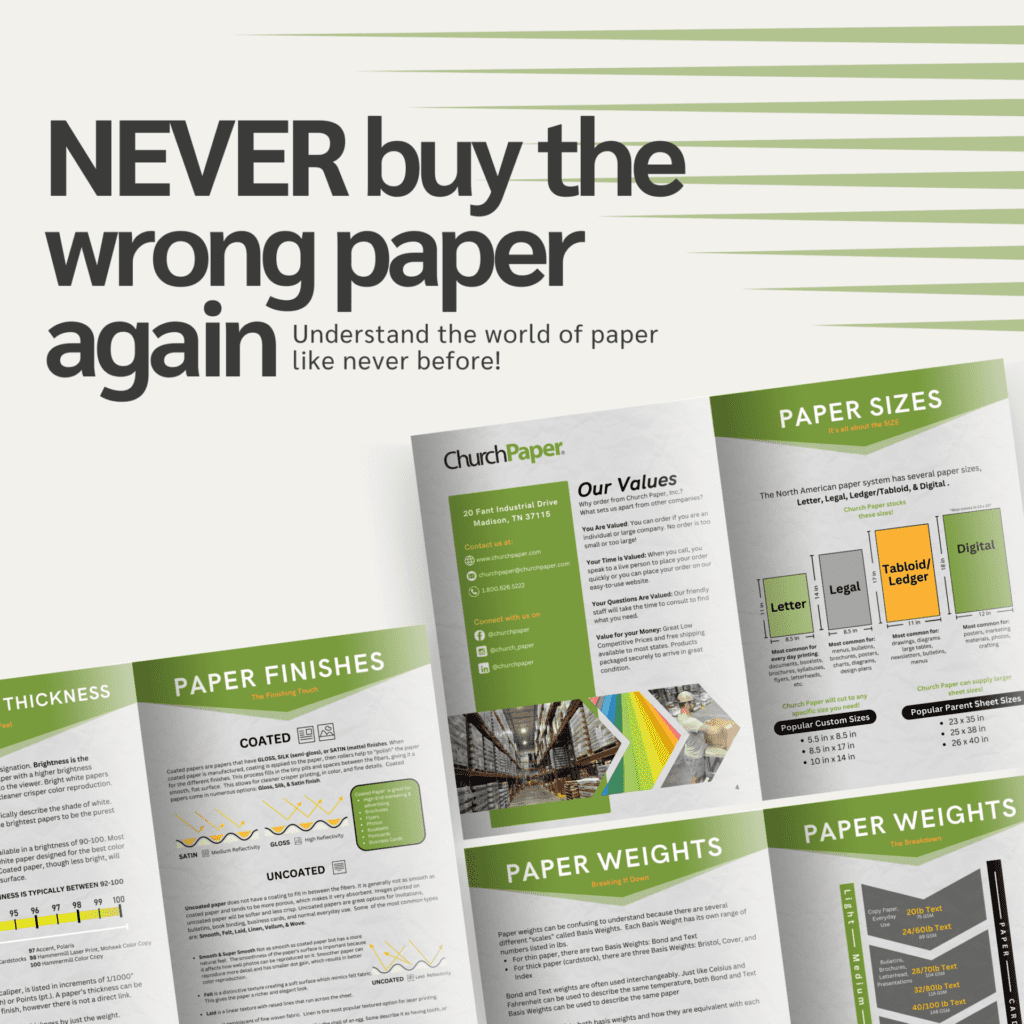 At Church Paper, we’ve just launched Paper 101: A Comprehensive Guide on Buying the Right Paper to help you navigate the often confusing world of paper. This guide is perfect for anyone looking to understand how different paper types can impact the look and feel of their print materials.