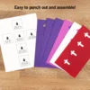 - 6 sheets of quality colored cardstock, each sheet holding pre-cut pieces that are easy to punch out.